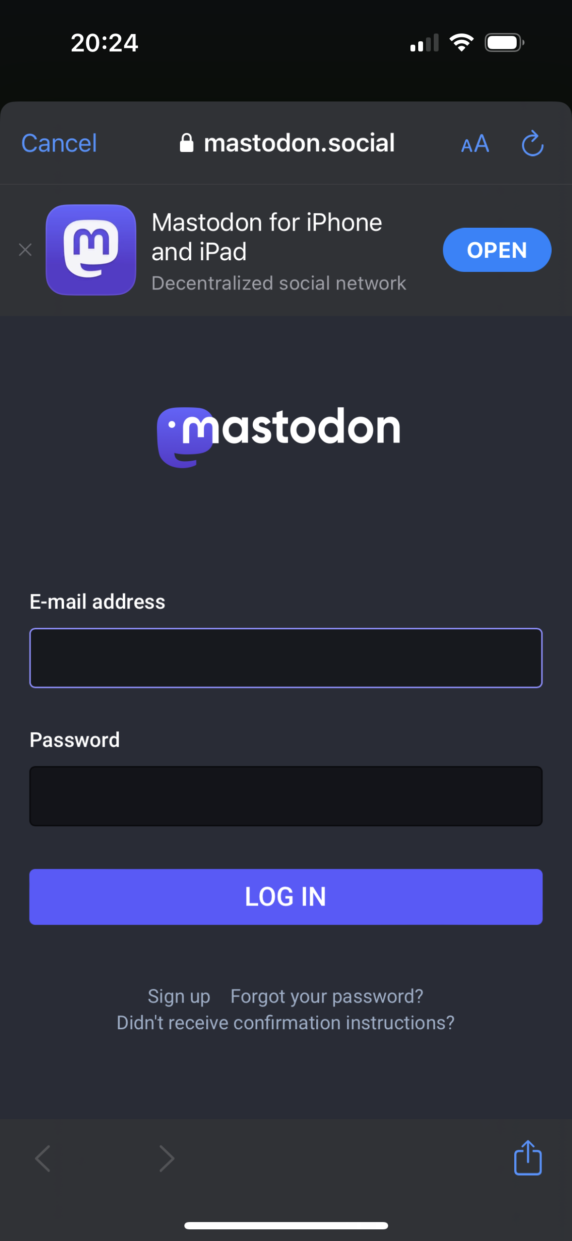 As many others, I recently took another look at Mastodon.1 This is the web view that pops up when you’re performing a login in the official “Mastodon for iPhone and iPad” app.
