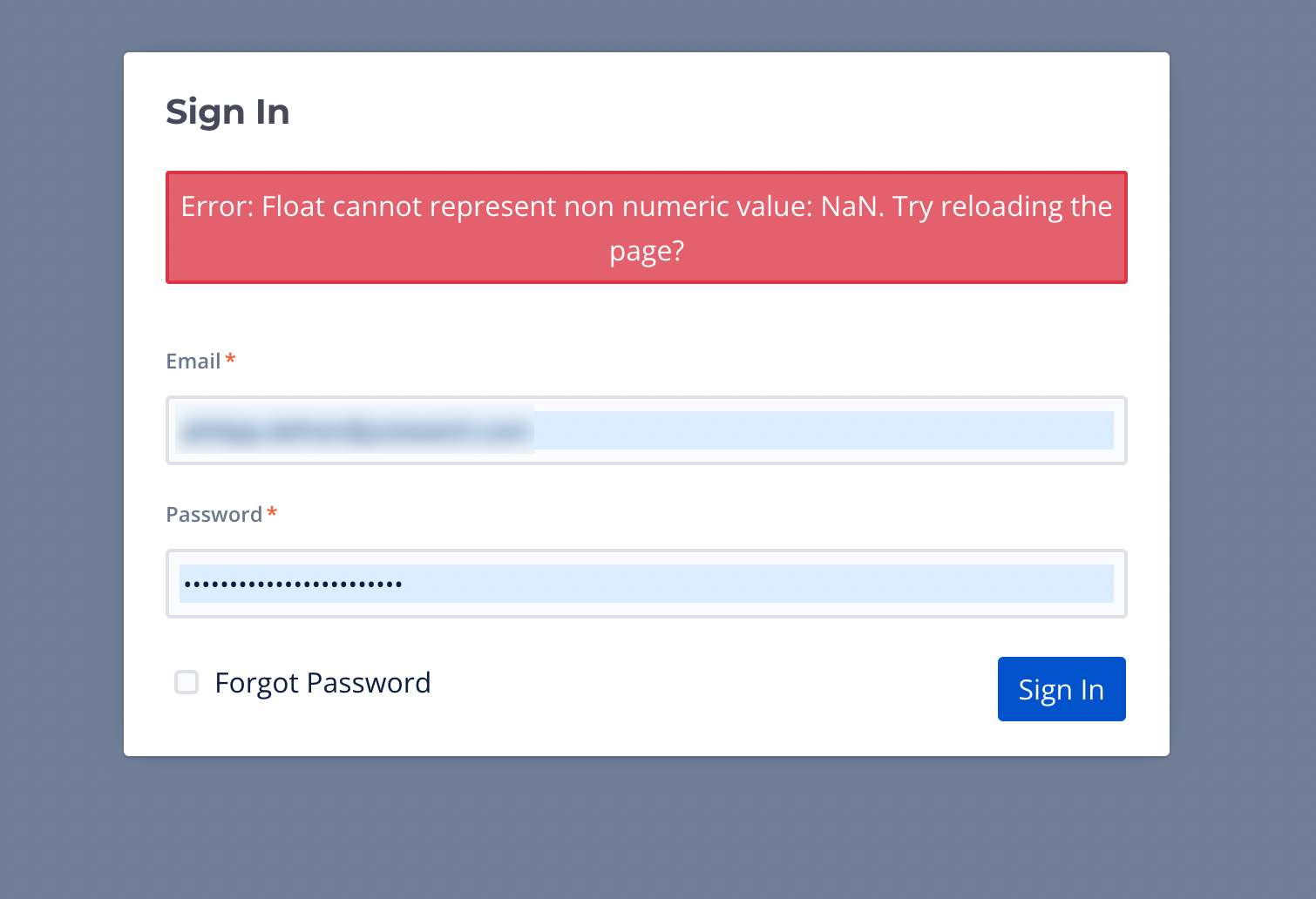 My bad, shouldn’t have used a string password.